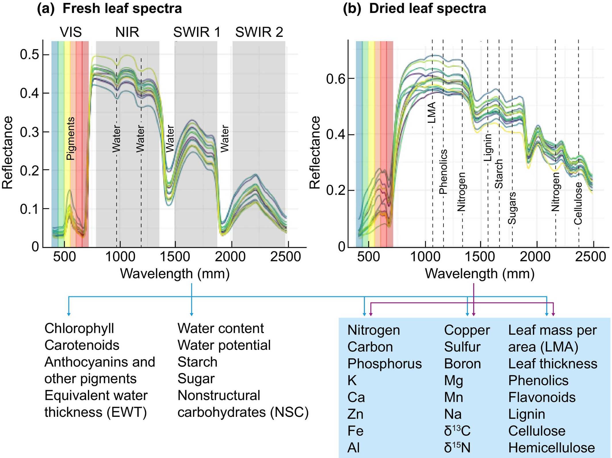 A reflectância espectral mede como folhas e outros tecidos vegetais refletem a luz ao longo de diferentes comprimentos de onda (do visível ao infravermelho). Esses “assinaturas espectrais” carregam informações valiosas sobre composição química, estrutura, traços funcionais e até identidade taxonômica das plantas.